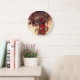 Clock featuring Arthur Rackham’s illustration Santa Claus (1907). A red robed Santa Claus carries a bag of Christmas presents in a snowy wood. Elves fly by his side. A jolly gift for Christmas!