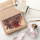 Stickers featuring Arthur Rackham’s illustration Santa Claus (1907). A red robed Santa Claus carries a bag of Christmas presents in a snowy wood. Elves fly by his side. A jolly gift for Christmas!