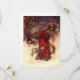 Card featuring Arthur Rackham’s illustration Santa Claus (1907). A red robed Santa Claus carries a bag of Christmas presents in a snowy wood. Elves fly by his side. A jolly gift for Christmas!