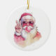 Santa Claus Blowing Bubble Gum Pink Sunglasses Ceramic Tree Decoration