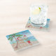 Christmas themed coaster for a snowbird or someone living on the coast. Santa Claus building a snowman out of sand watercolor painting.