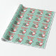 Santa Claus cartoon with Christmas tree teal Wrapping Paper