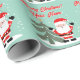 Santa Claus cartoon with Christmas tree teal Wrapping Paper. Cute Holiday design for friends and family. Personalized gift wrap for parents, children and babies. Funny joyful illustration with for the winter season. Add your own name and custom seasons greetings like Merry Christmas or Happy Holidays. Customizable background color.