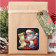 Santa Claus Checking His Long List of Gifts Black Square Sticker