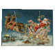 Christmas Santa on his sleigh - This image is from an old antique Christmas card from the 1800s. It shows santa on his sleigh on Christmas Eve, with his reindeer and toys!