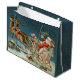 Santa Claus Christmas Antique Sleigh Reindeer Large Gift Bag