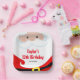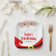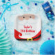 This fun and festive birthday plate features a cute Santa Claus in a red suit and gold buckle belt. The text combines decorative and sans serif fonts for a stylish and modern look. This is perfect for a Christmas themed birthday.