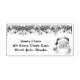 Christmas return or mailing address rubber stamp for letters from Santa or to Santa Claus. Hand drawn vintage Santa holding he has a big smile on his face, and is wearing glasses. Santa's address lettering is done in a snow font.