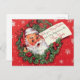 Santa Claus Christmas Postcard Wreath retro