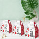 Cute Santa Claus graphic character appears from far left and typography is "HO HO HO TO YOU" all on the front side. Surrounding the box is a classic Norwegian knitting pattern created digitally in red and white.
