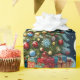This wrapping paper features a lively and festive design with Santa Claus depicted in various joyful activities. The scenes include Santa riding his sleigh with reindeer, waving cheerfully, delivering presents to snowy houses, and enjoying milk and cookies by a Christmas tree. The repeating pattern is set against a midnight blue, starry sky, enhanced with golden accents, snowflakes, and holly sprigs. The warm reds, whites, and greens create a classic Christmas esthetic, perfect for wrapping gifts with holiday cheer.