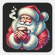 Santa Claus Enjoying a Cosy Drink on a Winter Day Square Sticker