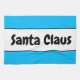This fun Christmas holiday design features retro SANTA CLAUS text inside a wide white centre stripe highlighted with black pinstripes against bright sky blue outer stripes.