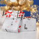 Add a playful charm to your holiday gifts with this grey wrapping paper featuring festive scenes of Mr. and Mrs. Santa Claus dancing in their iconic red outfits. Another delightful scene shows them standing together beside a beautifully decorated white Christmas tree adorned with colourful string lights. Snowflake motifs and the joyful 'HO' lettering are scattered between the images, creating a whimsical and heartwarming Christmas theme. Perfect for holiday presents, this 30-inch by 6-foot roll of wrapping paper brings a touch of cheer and holiday spirit to your gifts.