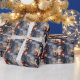 Pretty wrapping paper with an image of Santa Claus holding a lantern, standing in front of a home he just delivered gifts to