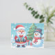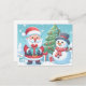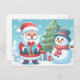 A festive design with Santa Claus, a snowman and a Christmas tree in a cartoun style