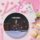 Do you believe in Santa Claus? Features Santa Claus on the roof of a house after delivering presents. Customisable text reading "I BELIEVE" also appears.