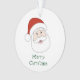 A cartoon style illustration of Santa Claus with a jolly face (with no background, so your choice of colour can be applied) with type/text saying 'Merry Christmas' on both sides, which can be altered or name added to personalise.