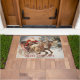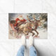 Beautiful Merry Christmas doormat with Santa Claus in his red sleigh being pulled by two strong reindeer through the snow.