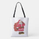 Christmas character Santa Claus in red with gift bag and eyeglasses on transparent background