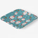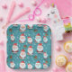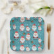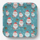 Cute Christmas design of holiday Santa Claus and gifts on aqua background with snowflakes.