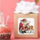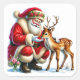 Santa Claus Interacting With a Gentle Reindeer Square Sticker