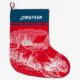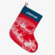 This unique, modern Christmas stocking features an illustrated, engraved ❄ winter landscape on a red background, a house and snow-covered trees. In the foreground, Santa Claus rushes along on his sleigh with his reindeers harnessed in front of him. The personalised name on it will bring a special Christmas joy to every loved one! You can customise the background, font and text. 🎄✨ Merry Christmas! ©Susanne Sachers - Sunny Mind Design 🌞