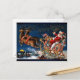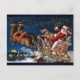 Surprise your family and friends with a charming vintage Christmas card featuring Santa Claus riding his sleigh full of toys above a winter town.
