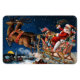 Another charming vintage flexible Christmas magnet featuring Santa Claus riding his sleigh full of toys above a winter town.
