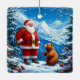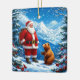 Santa Claus Meets Friendly Bear in Snowy Mountain Ceramic Ornament