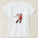 Santa Claus playing golf with his white and red outfit and a large big nose. With a five wood.