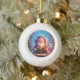Santa Claus Reading a Book by Candlelight Ceramic Ball Christmas Ornament
