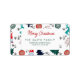 These holiday return address labels feature Santa Claus, Reindeer, Pine Trees, Mittens, and snowflakes on a white background. The typography "Merry Christmas" is in red and green. You can personalise the greeting and name.