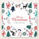 These holiday Square Paper Coasters feature Santa Claus, Reindeer, Pine Trees, Mittens, and snowflakes on a white background. The typography "Merry Christmas" is in red and green. You can personalise the greeting and name.