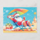 Santa Claus Relaxing on a Tropical Beach Sunbed Holiday Postcard
