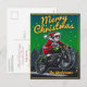 Santa Claus Rides On A Motorcycle Merry Christmas Holiday Postcard