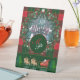 Celebrate the season with the Pedestal Sign - "Hello Winter" Holiday Calligraphy Lettering & Monogram. This beautifully designed sign features elegant calligraphy with a personalised touch, perfect for your Holiday Event. The design captures a Winter Fairy Tale Night with Santa Claus riding his sleigh, led by reindeer. Snowflakes, Nordic and Celtic patterns, and red berry and green leaf Christmas wreath ornaments add a festive, traditional feel.