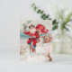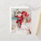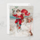 Santa Claus Riding Bicycle, Reindeer and Rabbit Christmas Holiday Card.