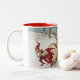 Santa Claus Riding Log as Elves Push and Pull Two-Tone Coffee Mug