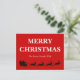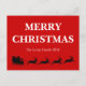 This postcard with a black silhouette of Santa Claus riding four reindeer on the sleigh filled with a big bag of gift on bright red background and white cheerful merry Christmas text and the family name sends a warm sweet cheerful loving holiday season greeting message. Customise it to make it special.