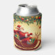 Santa Claus Riding Sleigh with a Reindeer Can Cooler