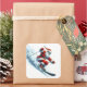 Santa Claus Skiing Down a Snowy Mountain Slope Square Sticker