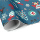 Beautiful contemporary image of Santa on his sleigh being pulled by reindeer, Christmas trees, baubles and candy canes. This original, classy, chic, stylish and perfect gift wrap will put a smile on the faces of young and old when unwrapping their December Christmas holiday presents.