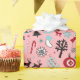 Beautiful contemporary image of Santa on his sleigh being pulled by reindeer, Christmas trees, baubles and candy canes. This original, classy, chic, stylish and perfect gift wrap will put a smile on the faces of young and old when unwrapping their December Christmas holiday presents.