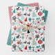 Santa Claus Sleigh Reindeer Pine Trees Art Pattern Wrapping Paper Sheet