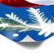 Cheerful Santa Claus in traditional red attire surrounded by a winter-themed background featuring snowflakes and pine branches. Perfect for holidays and Christmas-themed designs.