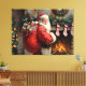 This acrylic painting portrays a classic, heartwarming depiction of Santa Claus in a festive holiday setting. Santa stands in front of a glowing fireplace adorned with a vibrant garland of greenery, holly, and red berries. Red-and-white stockings hang neatly from the mantel, creating a cosy and cheerful atmosphere. A large wreath, decorated with a bright red bow and holly, adds to the holiday charm.
