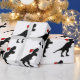 A drawing of a Tyrannosaurus Rex wearing a Santa Claus hat on it's head.