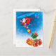 Send your warm wishes to your family and friends with this funny merry Christmas postcard featuring Santa throwing gifts from helicopter.