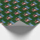 father christmas marching with the american state's flag of Oregon guided by his lovely little helper